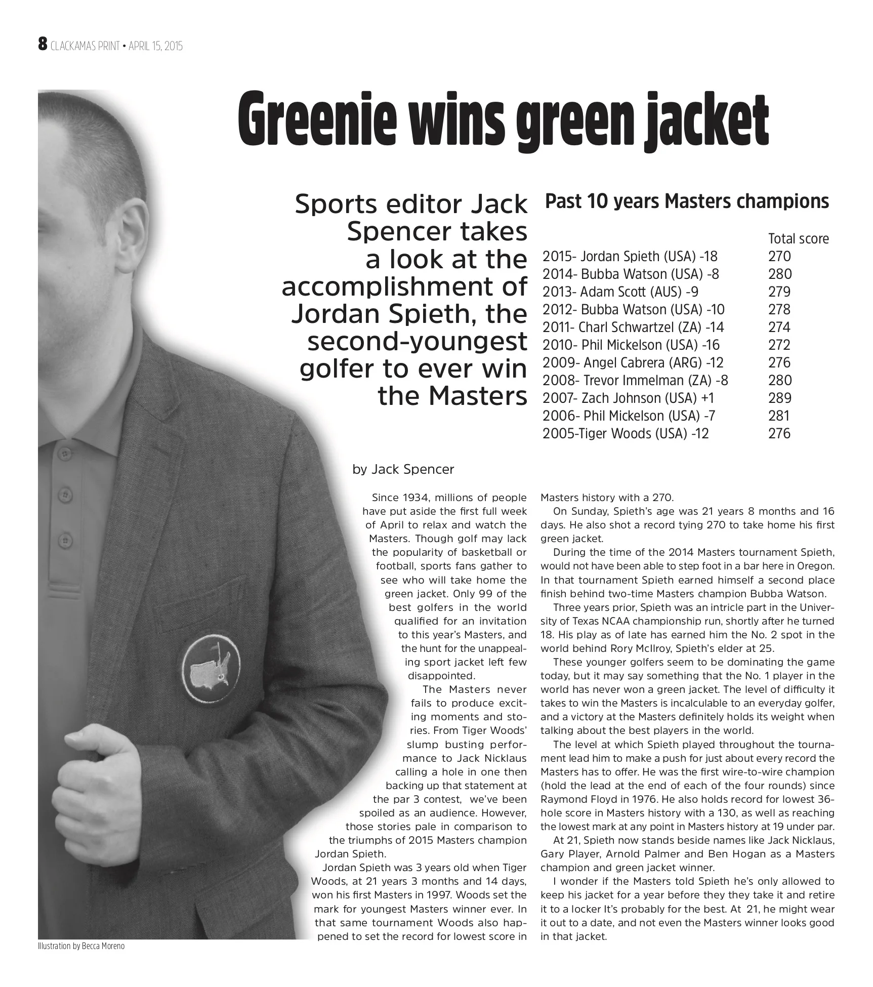Our sports editor Jack had written an article about the Masters and had introduced me to this ominous “green jacket” concept. We hadn’t been able to gather any original visual content and we were to go to print in two days. In mild desperation, I had an idea to create our own “stock” image of a man wearing the green jacket. I had Jack come to the office the next day in a blazer and golf attire, took a few shots on a blank background, ran the idea past my Editor-In-Chief (it’s taboo to feature staff as subjects in the news), got a green light, and photoshopped the emblem onto the jacket in post. It went to print the next day and the positive responses came flooding in. As a result, the newspaper encouraged me to play more with “outside of the box” imagery in future editions.